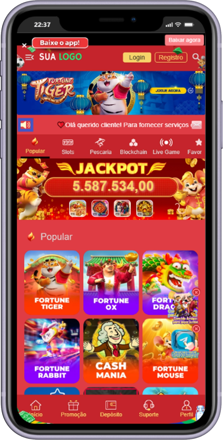 A plataforma conta com integração à PlayFiver API, garantindo acesso a um portfólio diversificado de jogos, incluindo slots, jogos interativos e outras modalidades populares do segmento. Essa integração proporciona uma experiência dinâmica ao usuário final, com variedade de conteúdo e alta disponibilidade.